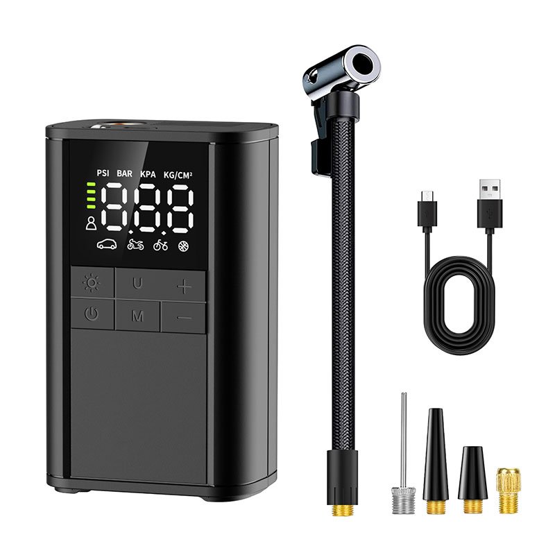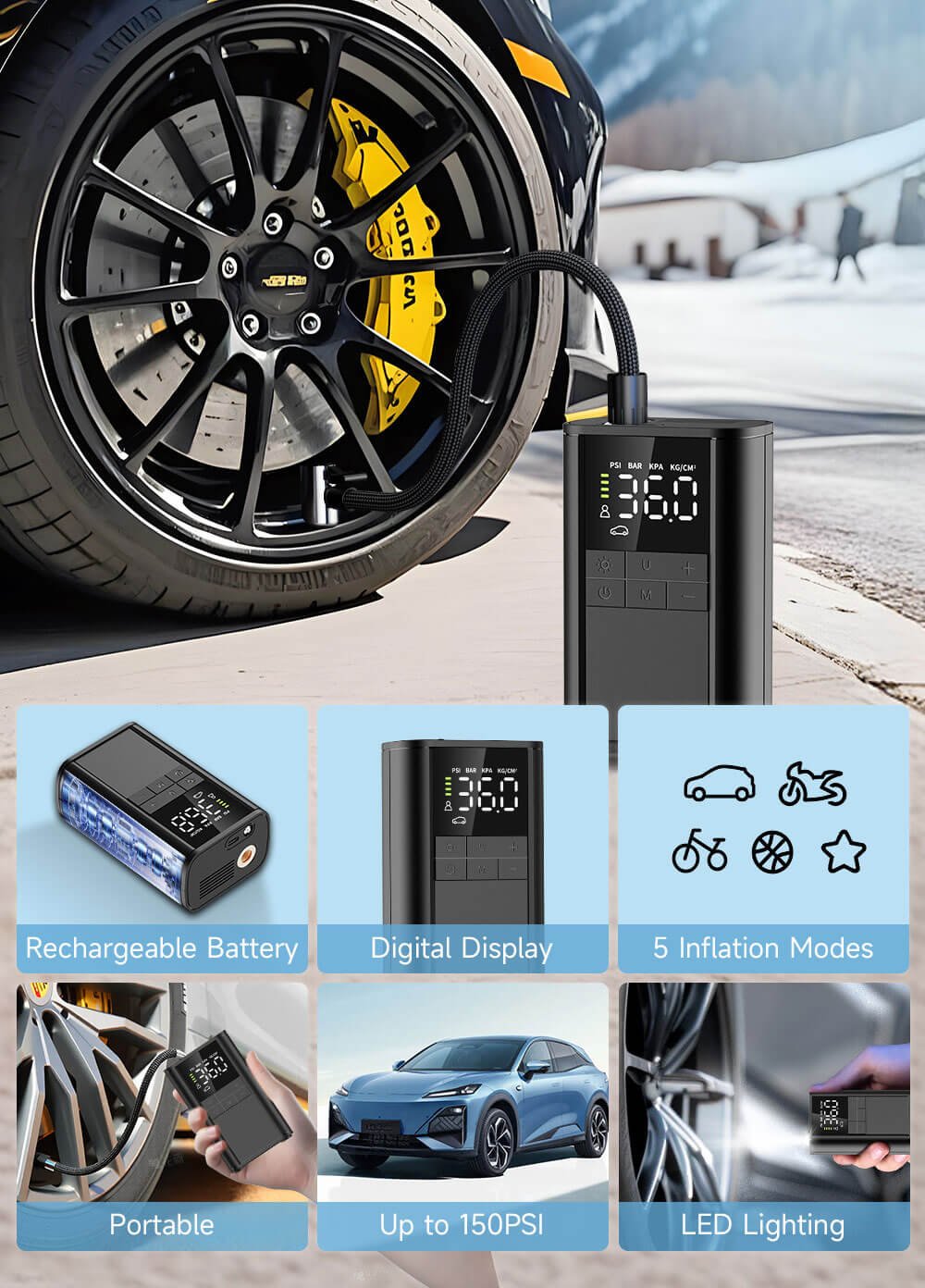 A compact and powerful portable air pump designed for quick and easy inflation. With a digital display, 150 PSI max pressure, and auto shut-off function, it is perfect for inflating car tires, bicycles, motorcycles, sports balls, and more. Ideal for wholesale and OEM customization. ๐Ÿš—โšก