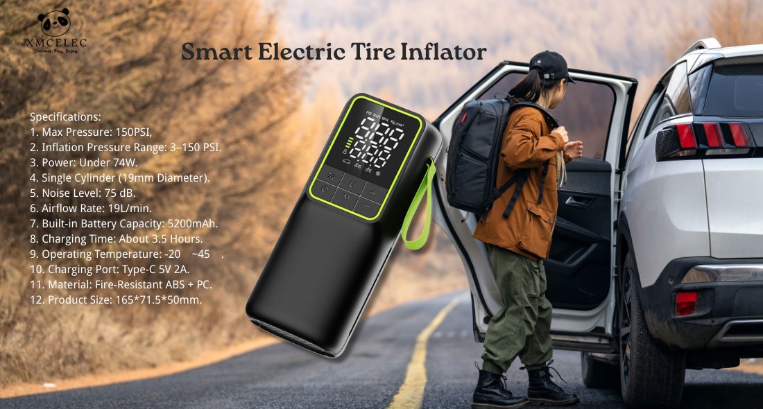 Built with fire-resistant ABS and PC materials, this air pump is durable and designed for everyday use. It includes a 5200mAh rechargeable battery that provides cordless convenience and can also work as a power bank with 5V/2A output for charging small devices. With a Type-C charging port, fast charging takes about 3.5 hours. The pump operates within a wide temperature range of -20℃ to 45℃, making it suitable for various environments. XMCELEC also supports customized colors and OEM branding, making it an excellent choice for wholesalers, distributors, and private label partners.