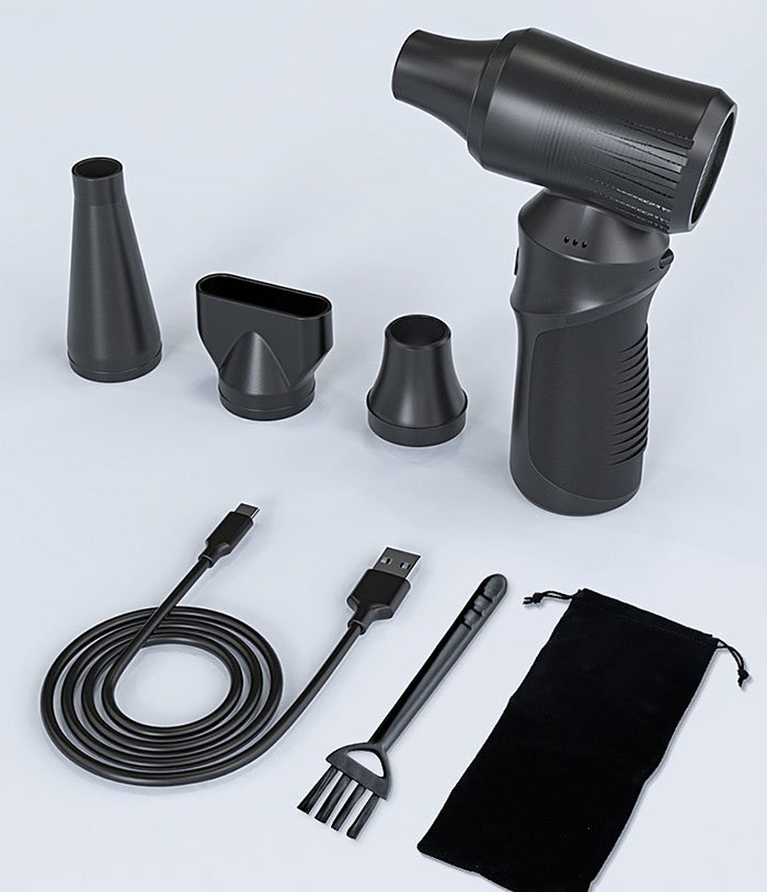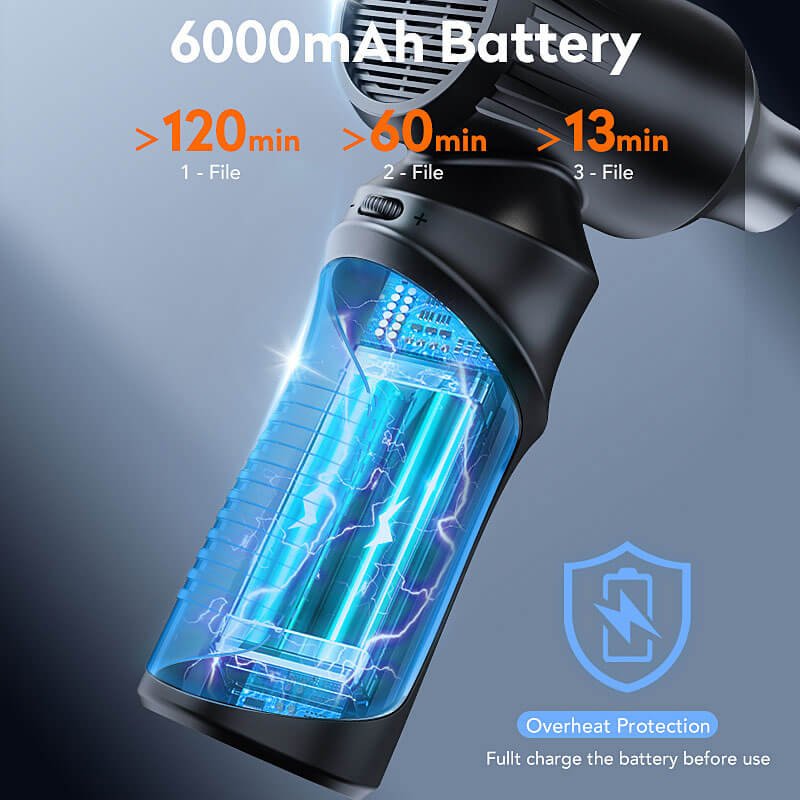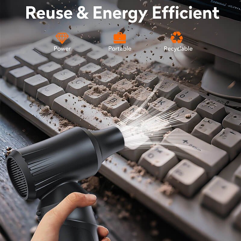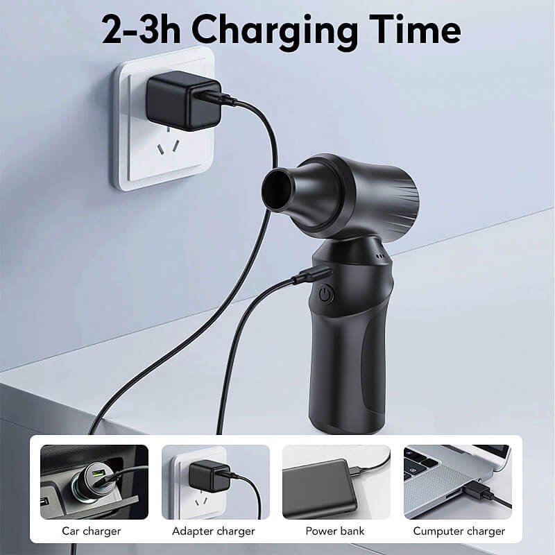 This cordless air duster is equipped with a 6000mAh battery for long-lasting and stable output. It supports Type-C charging and reaches full power in just 2–3 hours. Designed to operate reliably from -10℃ to 45℃, it performs well in both indoor and outdoor environments. The durable ABS and metal construction ensures consistent quality and long service life.