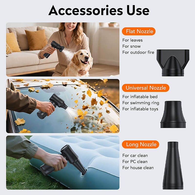 Applications: Dust Cleaning, Hair Drying, Camping, etc.