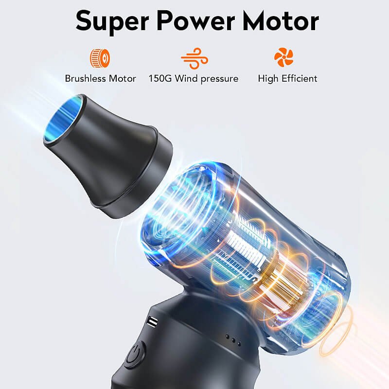 High-speed Wireless Multi-purpose Air Duster with 3 adjustable wind levels and a powerful 29mm bushless motor. Designed for car interiors, dust cleaning, camping, and daily use. Reliable performance, cordless convenience, and OEM/ODM support for wholesale partners.
